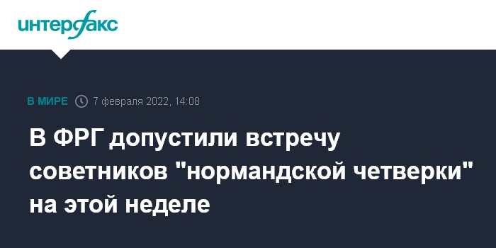 Москва. 7 февраля. INTERFAX.RU - Встреча "нормандской четверки" на уровне советников может состояться на этой неделе. Об этом сообщила официальный представитель правительства ФРГ Кристиане Хоффманн.