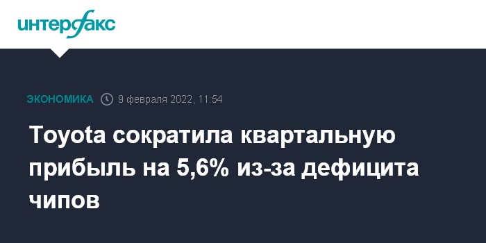 Toyota сократила квартальную прибыль на 5,6% из-за дефицита чипов