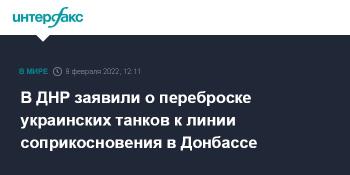 Москва. 9 февраля. INTERFAX.RU - Украинская сторона перебрасывает танки к линии соприкосновения в Донбассе, заявил представитель Народной милиции самопровозглашенной Донецкой народной республики Эдуард Басурин.