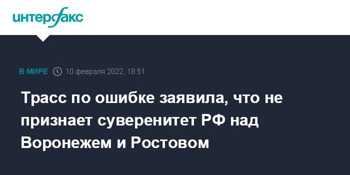 Трасс по ошибке заявила, что не признает суверенитет РФ над Воронежем и Ростовом