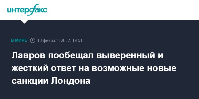 Лавров пообещал выверенный и жесткий ответ на возможные новые санкции Лондона