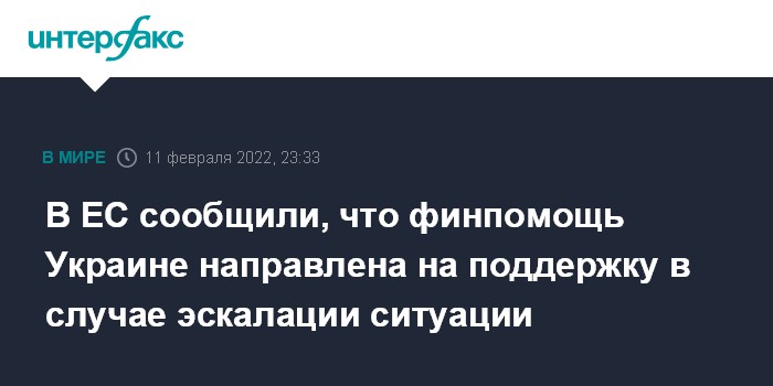 Москва. 11 февраля. INTERFAX.RU - Выделенная Евросоюзом Украине с 2014 года финансовая помощь на более чем 17 млрд евро направлена на модернизацию, демократизацию, но также для поддержки в случае эскалации ситуации, заявил Петер Стано, официальный представитель главы дипломатии ЕС Жозепа Борреля.