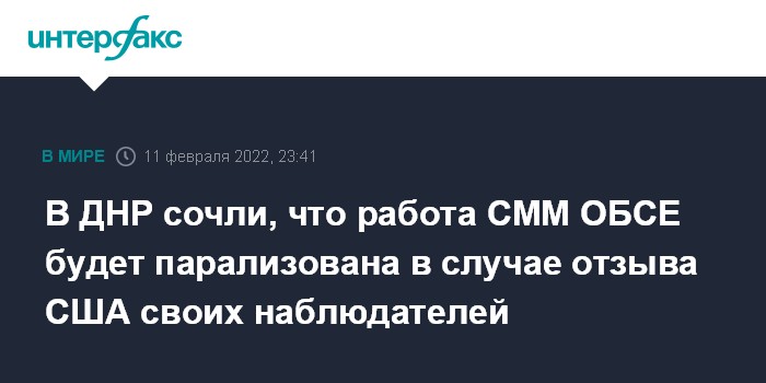 Москва. 11 февраля. INTERFAX.RU - В случае отзыва Вашингтоном американцев из миссии ОБСЕ на Украине, Донбасс может покинуть существенная часть наблюдателей, работа Спецмониторинговой миссии в регионе будет парализована, сообщил "Интерфаксу" осведомлённый источник в самопровозглашенной Донецкой народной республике.