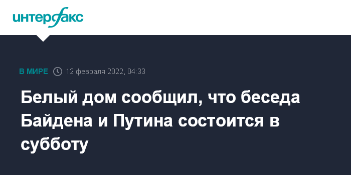 "Президент Байден и российский президент Путин побеседуют в субботу утром (по времени Вашингтона - мск минус 8 часов - ИФ)", - сообщил он журналистам.