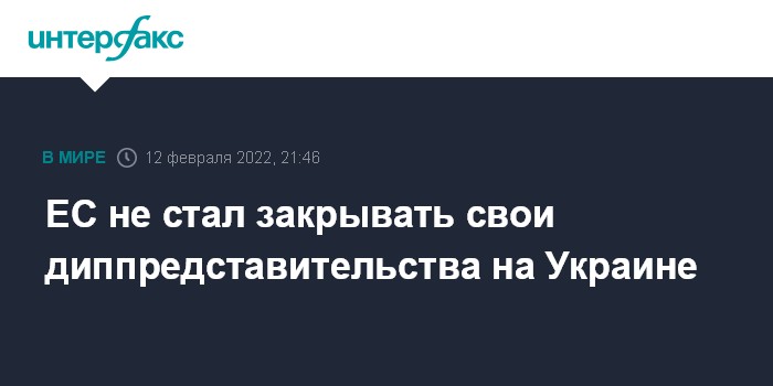 Москва. 12 февраля. INTERFAX.RU - Высокий представитель Европейского союза по вопросам внешней политики и политики безопасности Жозеп Боррель выступил с деклараций от имени ЕС, в которой заявил, что дипломатические представительства Евросоюза продолжают работать в Киеве.