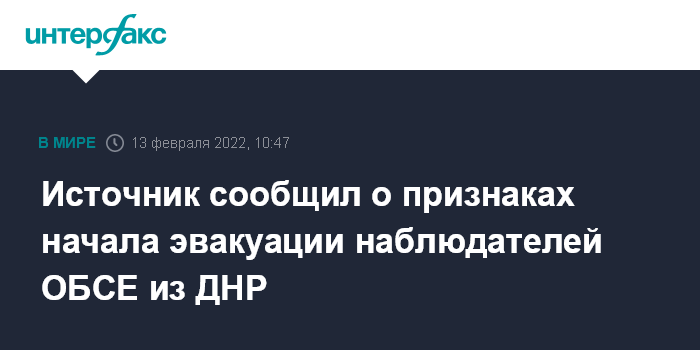 Ранее телеканал CNN со ссылкой на источник в администрации США сообщил о планах Вашингтона вывезти с Украины американских граждан из числа СММ ОБСЕ, задействованных в Донбассе.