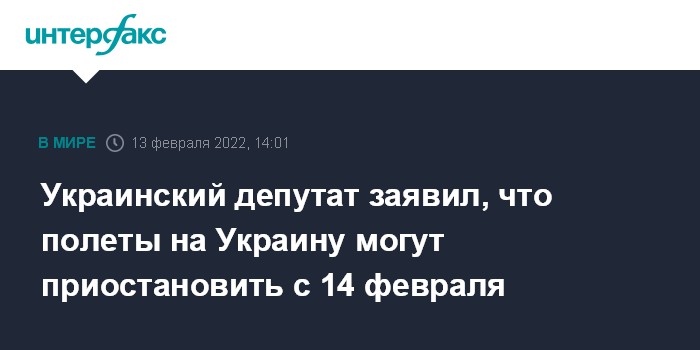 Украинский депутат заявил, что полеты на Украину могут приостановить с 14 февраля