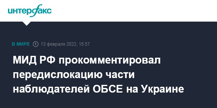 Москва. 13 февраля. INTERFAX.RU - Решение ряда стран передислоцировать своих граждан, работающих в специальной мониторинговой миссии (СММ) ОБСЕ на Украине, вызывает серьезную озабоченность, миссию используют как инструмент для возможной провокации, заявляет официальный представитель МИД РФ Мария Захарова.