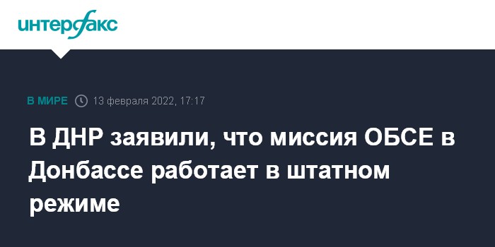 Москва. 13 февраля. INTERFAX.RU - Говорить об эвакуации сотрудников Спецмониторинговой миссии ОБСЕ из Донбасса пока преждевременно, заявили в представительстве самопровозглашенной Донецкой народной республики в совместном центре контроля и координации режима прекращения огня (СЦКК).