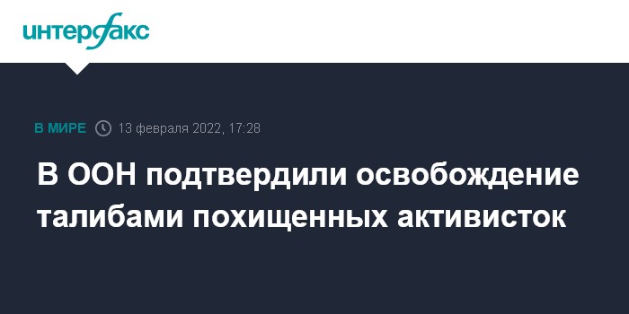 Москва. 13 февраля. INTERFAX.RU - Миссия ООН по содействию Афганистану (МООНСА) в воскресенье подтвердила освобождение движением "Талибан" (запрещенная в России террористическая организация - ИФ) женщин-активисток, пропавших 19 января после участия в демонстрации протеста.