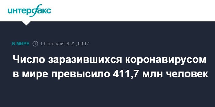 Москва. 14 февраля. INTERFAX.RU - Число зарегистрированных случаев заражения коронавирусом в мире на утро понедельника достигло 411 730 784, свидетельствуют данные американского университета Джонса Хопкинса.