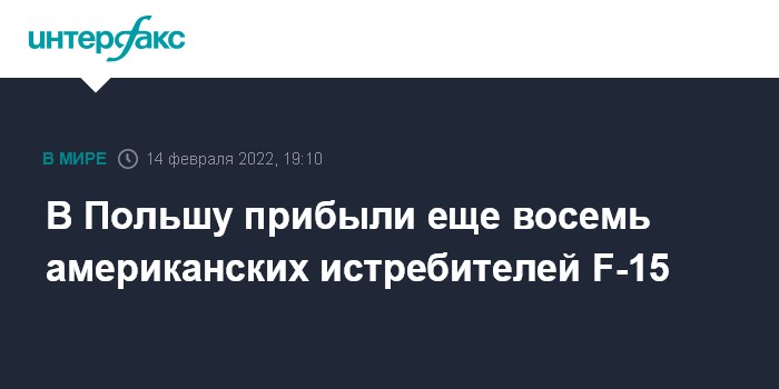 Москва. 14 февраля. INTERFAX.RU - В Польшу в понедельник прибыли еще восемь американских истребителей F-15. Об этом сообщил в твиттере польский министр обороны Мариуш Блащак.