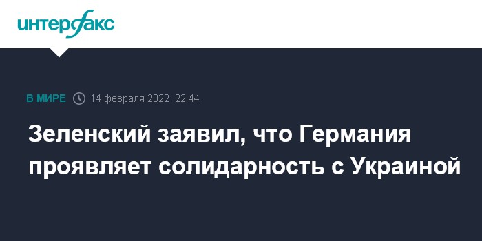Москва. 14 февраля. INTERFAX.RU - Украина и Германия едины в позиции небезопасности эскалации на украинско-российской границе для Европы и мира, несмотря на разные взгляды на определенные проблемы, заявил президент Владимир Зеленский.
