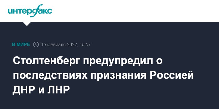 Столтенберг предупредил о последствиях признания Россией ДНР и ЛНР