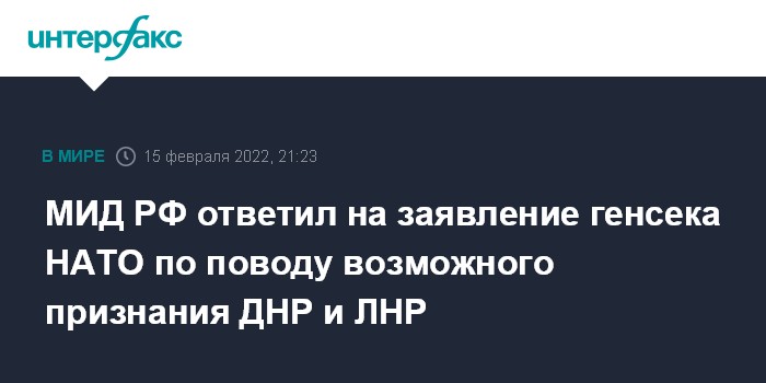 МИД РФ ответил на заявление генсека НАТО по поводу возможного признания ДНР и ЛНР