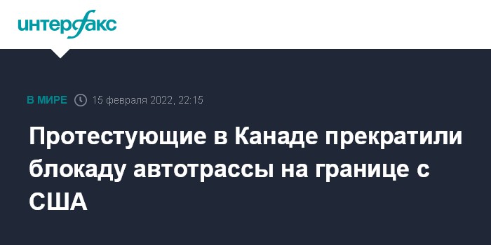 Москва. 15 февраля. INTERFAX.RU - Канадские дальнобойщики сняли блокаду автотрассы на границе с США, сообщает во вторник Associated Press.