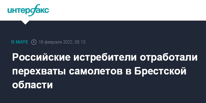 Москва. 16 февраля. INTERFAX.RU - Российские истребители Су-35 перехватили самолеты условного противника на учениях в Белоруссии, сообщили в Минобороны РФ.