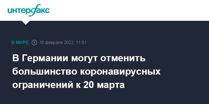 Москва. 16 февраля. INTERFAX.RU - Канцлер Германии Олаф Шольц и главы правительств федеральных земель Германии, как ожидается, рассмотрят предложения о снятии большинства ограничений из-за COVID-19 к 20 марта, сообщает агентство Associated Press.