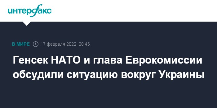 Москва. 17 февраля. INTERFAX.RU - Генеральный секретарь НАТО Йенс Столтенберг и глава Европейской комиссии (ЕК) Урсула фон дер Ляйен провели телефонный разговор, в ходе которого обсудили Украину и Россию.