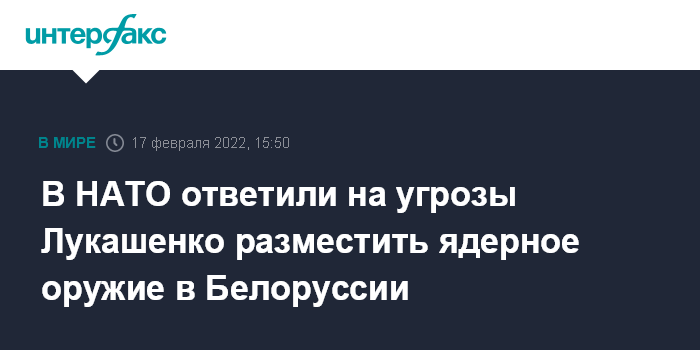 В НАТО ответили на угрозы Лукашенко разместить ядерное оружие в Белоруссии