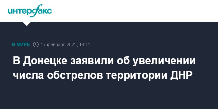 Москва. 17 февраля. INTERFAX.RU - Число обстрелов самопровозглашенной Донецкой народной республики с начала суток увеличилось до 18, заявили в Народной милиции (НМ) ДНР.