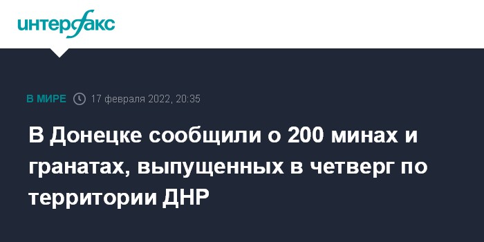 Москва. 17 февраля. INTERFAX.RU - Более 100 мин и столько же гранат выпущено с начала суток по территории самопровозглашенной Донецкой народной республики, заявил представитель Народной милиции ДНР Эдуард Басурин.