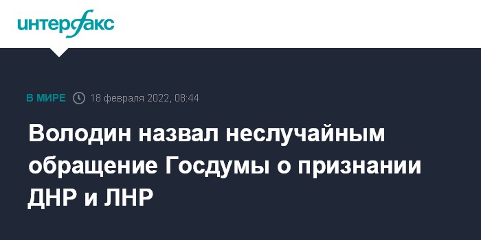 Володин назвал неслучайным обращение Госдумы о признании ДНР и ЛНР