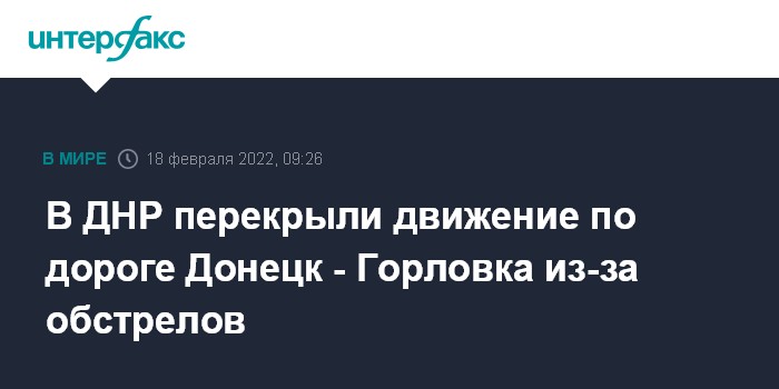 Москва. 18 февраля. INTERFAX.RU - Из-за обстрелов перекрыто движение по автомагистрали Донецк - Горловка, сообщил глава администрации Горловки самопровозглашенной Донецкой народной республики Иван Приходько.