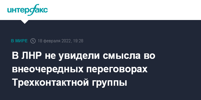 Москва. 18 февраля. INTERFAX.RU - В самопровозглашенной Луганской народной республике не видят смысла в проведении внеочередного заседания участников подгруппы по безопасности Трехсторонней Контактной группы по Донбассу, о созыве которого 17 февраля Киев запросил ОБСЕ.