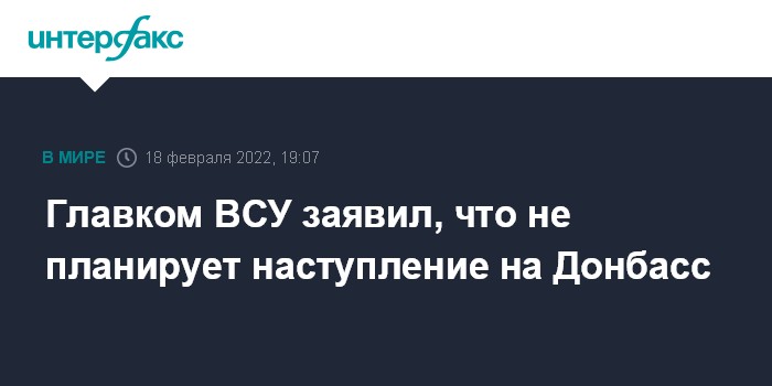 Москва. 18 февраля. INTERFAX.RU - Главнокомандующий Вооруженными силами Украины Валерий Залужный назвал слухами сообщения о том, что украинская армия планирует напасть на неподконтрольные Киеву районы Донецкой и Луганской областей.