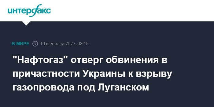 Москва. 19 февраля. INTERFAX.RU - Украина не причастна к взрыву газопровода в Луганской области, самопровозглашенной ДНР, поскольку он ей не принадлежит с 2014 года, что доказано в Стокгольмском арбитраже, заявил директор НАК "Нафтогаз" Юрий Витренко.