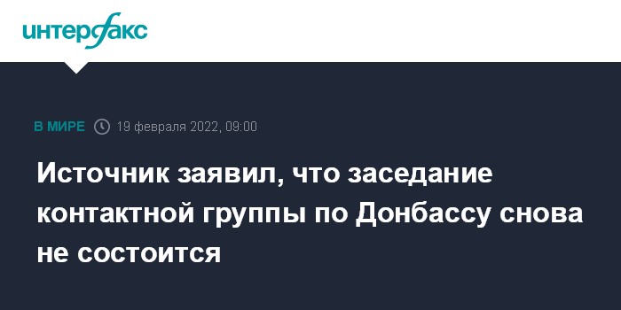 Москва. 19 февраля. INTERFAX.RU - Заседание трехсторонней контактной группы по Донбассу, запланированное на утро субботы не состоится, сообщил "Интерфаксу" источник на переговорах.