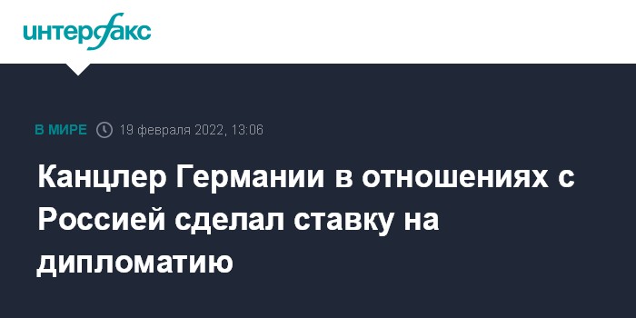 Москва. 19 февраля. INTERFAX.RU - Канцлер Германии Олаф Шольц считает, что в вопросе украинского конфликта и конфликта между Россией и ЕС, которую в Евросоюзе подозревают в подготовке вторжения на украинскую территорию, нужно делать ставку на дипломатию.