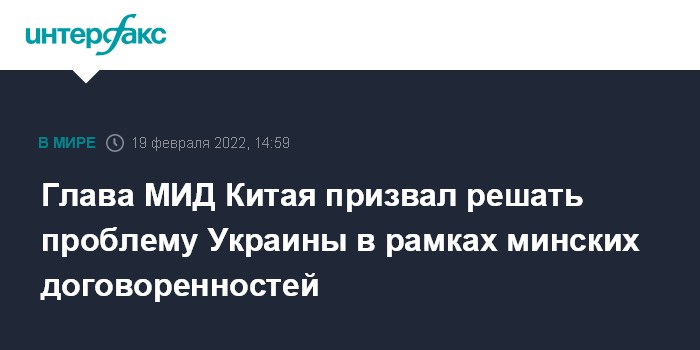 Москва. 19 февраля. INTERFAX.RU - Решать проблему Украины было бы разумно через минские договоренности, так как все стороны выражают готовность работать именно в этом формате, заявил в субботу глава МИД КНР Ван И.