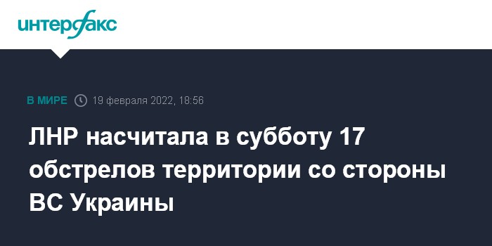 Москва. 19 февраля. INTERFAX.RU - Вооруженные силы Украины семнадцать раз с начала суток обстреляли территорию самопровозглашенной Луганской народной республики, сообщил журналистам в субботу представитель Народной милиции ЛНР Иван Филипоненко.