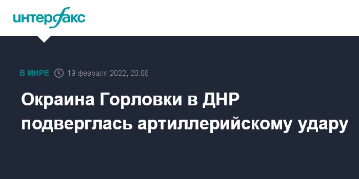 Москва. 19 февраля. INTERFAX.RU - Артиллерийскому удару подверглась окраина Горловки самопровозглашенной Донецкой народной республики, заявили в представительстве ДНР в совместном центре контроля и координации режима прекращения огня (СЦКК).