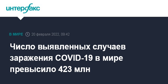 Число выявленных случаев заражения COVID-19 в мире превысило 423 млн