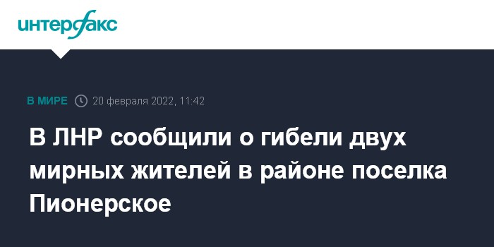 В ЛНР сообщили о гибели двух мирных жителей в районе поселка Пионерское