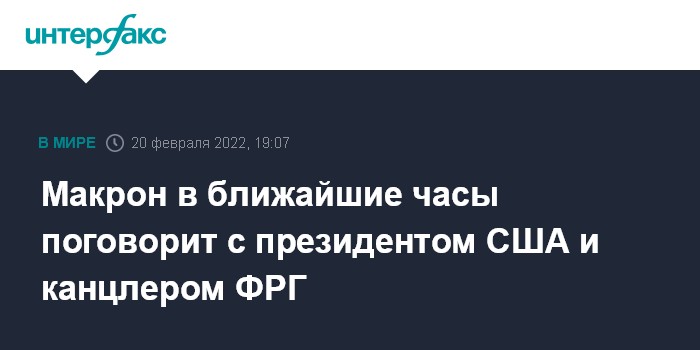 Москва. 20 февраля. INTERFAX.RU - Президент Франции Эммануэль Макрон намерен в ближайшие часы провести разговор с президентом США Джо Байденом и с канцлером ФРГ Олафом Шольцем, сообщает телеканал BFMTV со ссылкой на Елисейский дворец.