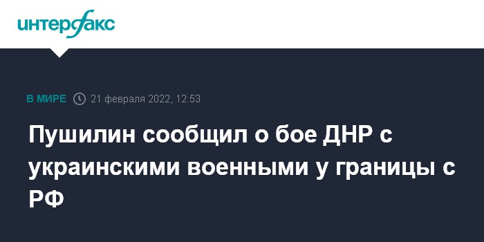 Москва. 21 февраля. INTERFAX.RU - Глава самопровозглашенной Донецкой народной республики Денис Пушилин сообщил о бое военных республики с украинскими силами у границы с РФ.