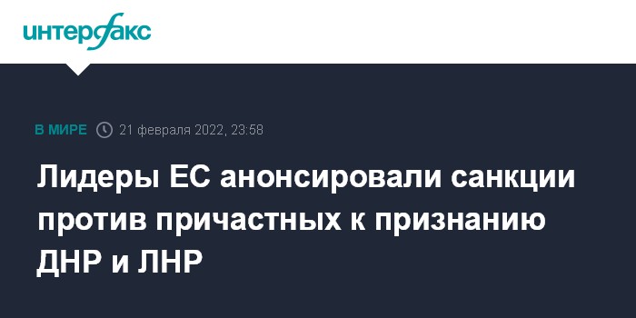 Лидеры ЕС анонсировали санкции против причастных к признанию ДНР и ЛНР