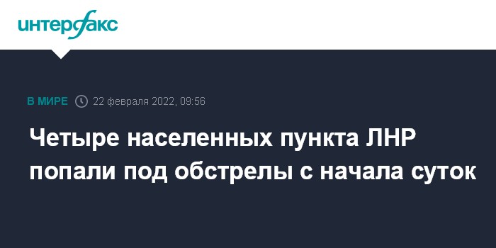 Москва. 22 февраля. INTERFAX.RU - Представительство самопровозглашенной Луганской народной республики в Совместном центре по контролю и координации режима прекращения огня (СЦКК) сообщает о пяти обстрелах с украинской стороны с начала суток.