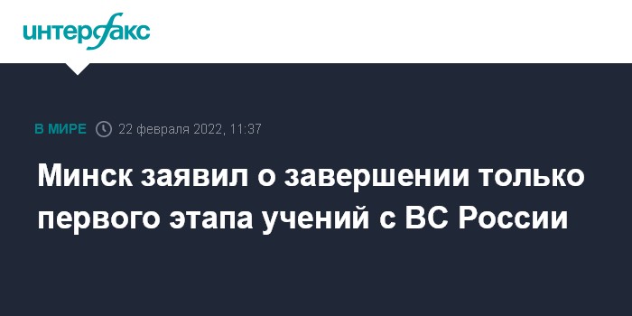 21 февраля начальник Генштаба ВС Белоруссии Виктор Гулевич заявил на брифинге для военных атташе, что российские части, которые прибыли в Белоруссию на учения, вернутся в пункты постоянной дислокации только тогда, когда в этом появится объективная необходимость.