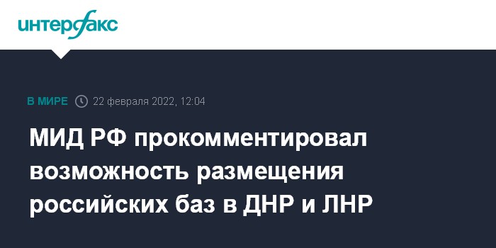 МИД РФ прокомментировал возможность размещения российских баз в ДНР и ЛНР
