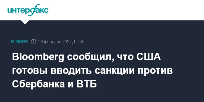 Москва. 23 февраля. INTERFAX.RU - Администрация президента США Джо Байдена готова при необходимости вводить санкции против других российских финансовых организаций, в частности, против Сбербанка и ВТБ, передает агентство Bloomberg со ссылкой на американское официальное лицо.