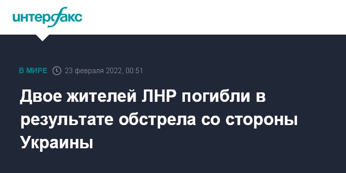 Москва. 23 февраля. INTERFAX.RU - Двое мирных жителей Луганской народной республики погибли в результате обстрела украинскими силами, говорится в сообщении представительства Совместного центра по контролю и координации режима прекращения огня (СЦКК) в ЛНР.