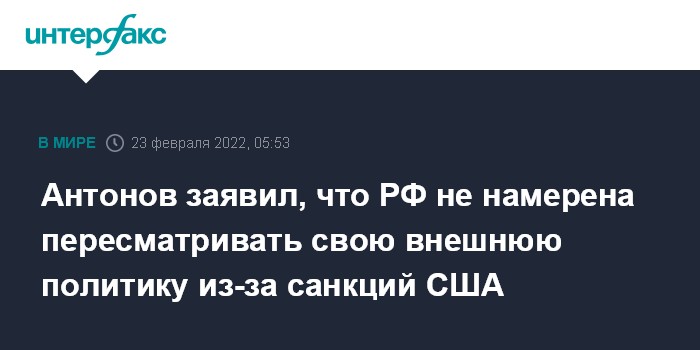 Антонов заявил, что РФ не намерена пересматривать свою внешнюю политику из-за санкций США