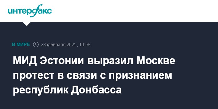 МИД Эстонии выразил Москве протест в связи с признанием республик Донбасса