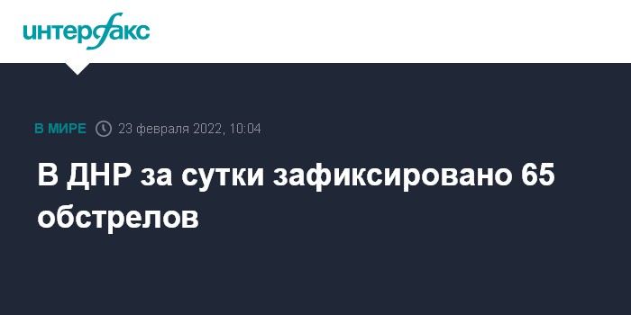 Москва. 23 февраля. INTERFAX.RU - 65 обстрелов ДНР зафиксированы за прошлые сутки, сообщил журналистам в среду представитель народной милиции Донецкой народной республики Эдуард Басурин.