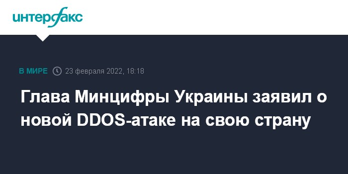 Москва. 23 февраля. INTERFAX.RU - Вице-премьер - министр цифровой трансформации Украины Михаил Федоров сообщил о начале DDoS-атаки на сайты украинских государственных органов, в частности, Верховной рады, правительства и МИД, а также банков.